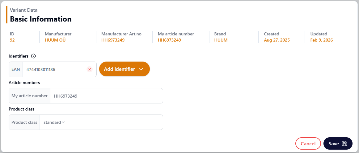 - Identifiers (EAN, etc)