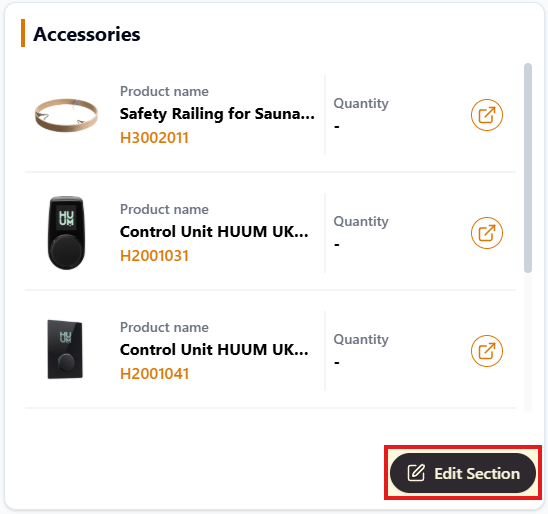 Add or remove your product relations by clicking Edit section. Accessories and Spare Parts are available in the Bulk Editing Basic Template. Here you can also add Addons, Components and Replaces.